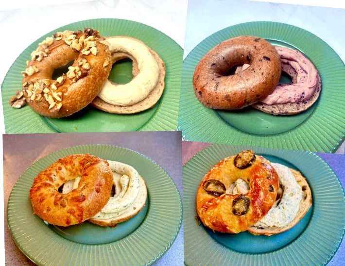 Taste the delicious combinations of our testy flavored bagels with complementary cream cheese spread.
